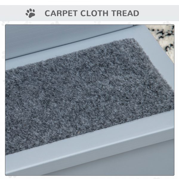3 Step Wooden Dog Steps Pet Stairs Cat Ladder for Bed with Storage Grey Pawhut