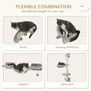 – Hanging toy balls: The cat tree has toys in different places, keeping cats entertained when feeling playful – the perfect modern cat tree.