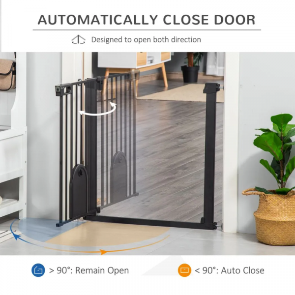 – 75-82 cm Pet Safety Gate, Stair Pressure Fit, Auto Close, Double Locking, Black