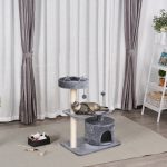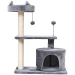 – Deluxe three-tier design, featuring a bottom hide-away hut, a large middle platform, a small top round perch with cute cat-shaped ears, a spring play ball and a hanging play ball– Particle board frame for strength and durability, with a bottom base to keep it upright and stable– Sisal scratching posts allow your cat to sharpen their claws safely, whilst deterring them from using your furniture– Soft and comfortable plush covering for safety– Great for keeping your cat/kitten entertained by themselves, as well as keeping them active– Suitable for cats under 5 kg, assembly required