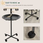 – Two stainless steel bowls for food and water – High-edged round tray prevents dirt from falling to the ground – wood perch and metal frame – a Sturdy and durable bird stand – four rolling wheels for easy movement – easy Assembly required