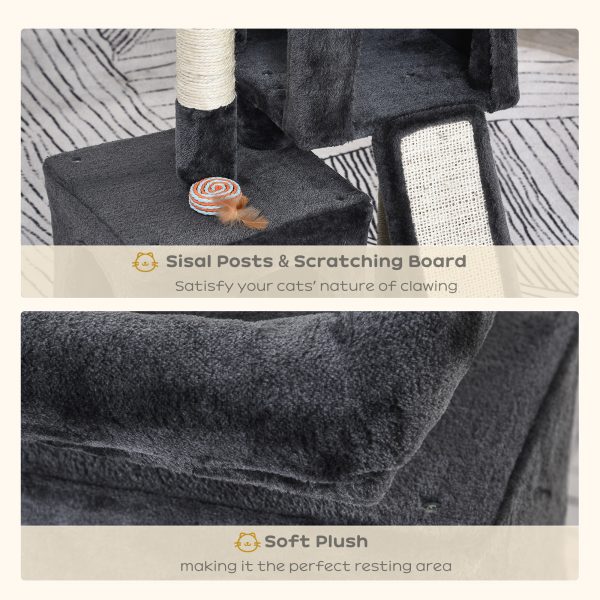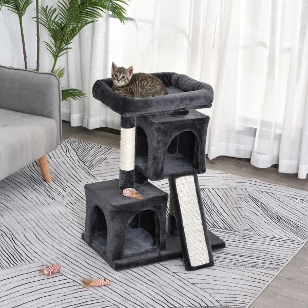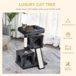 Cat Rest & Play Activity Tree w/ 2 House Perch Scratching Post Black Pawhut