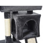 Multi-activity: The cat tower provides a spot for indoor cats to rest and play, featuring two large houses, a top cushioned perch and scratching posts.Sisal scratching posts: Keeps your cat’s claws sharp and in shape – also deterring them away from using your furniture.Plush covering: Soft and comfortable for them whilst they are playing/resting, it also ensures safety of this cat play tower.Sturdy frame: Made of solid particle board to ensure a tough and robust frame, this cat climbing tower is non-toxic and pet friendly. Large base to keep the balance of this cat tree tower. DIMENSIONS: 83H x 59L x 39W. Cat House: 28H x 30L x 30Wcm.MAXIMUM LOAD 30KG. ASSEMBLY REQUIRED.