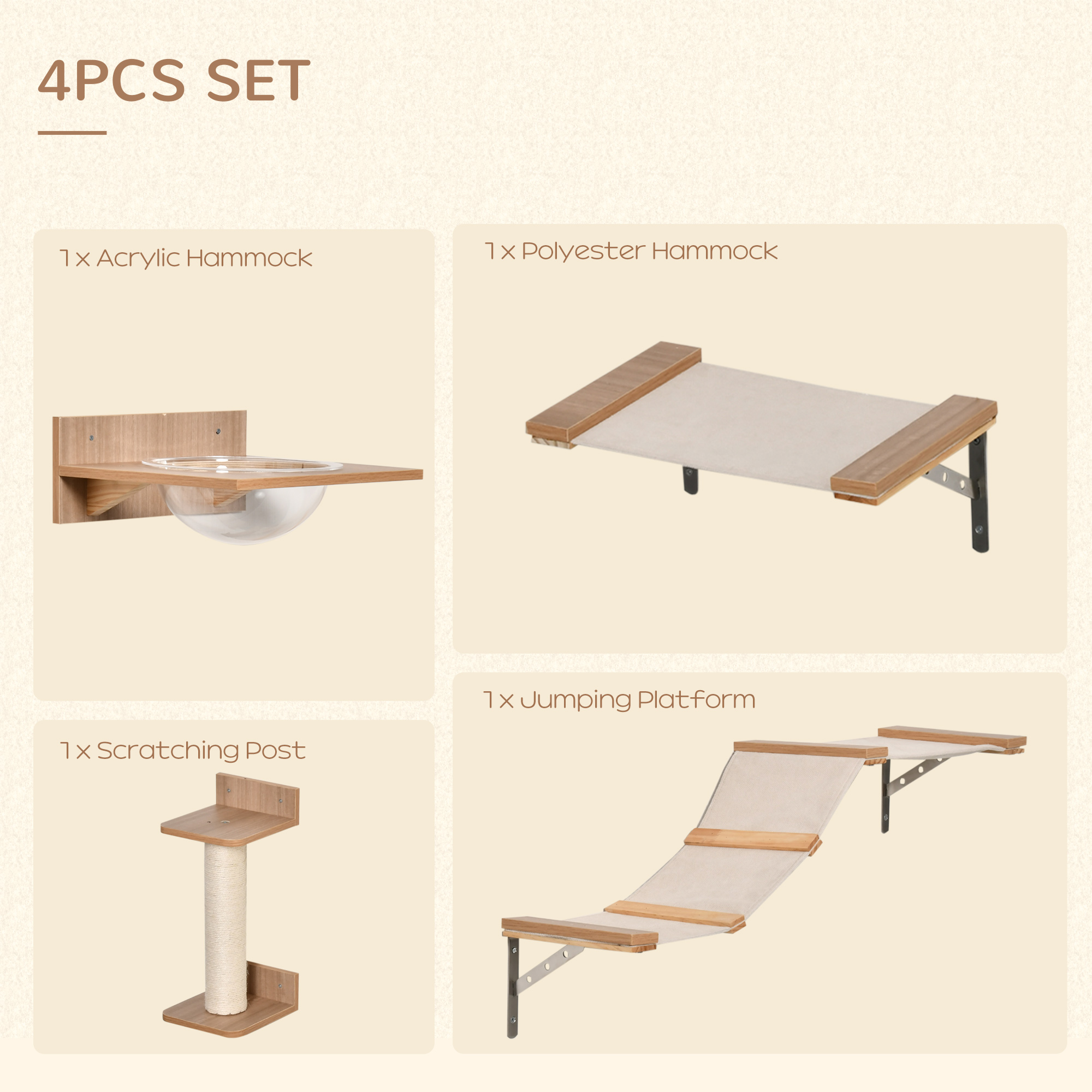 Cat Tree 4PCs Wall-mounted Shelf Set Climbing Tower W/ Hammock Scratching Post