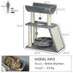 – Colour: Light Grey – Material: Particle board, Plush, Sisal – Overall Dimensions: 60L x 30W x 76H cm – Bed Dimensions: Dia34 x 7H cm – Base Dimensions: 60L x 30W cm – Second Platform: 45L x 30W cm. Hole: Dia15.5 cm – Scratching Pad Dimensions: 43L x 30W cm – U Shape Perch Dimensions: 45L x 25W x 12.5H cm – Post Diameter: Dia5.5 cm – Item Label: D30-481V00LG