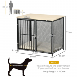 – “Dog Crate End Table w/ Soft Washable Cushion, Front Door, for Small, Medium Dogs” – Description: – Multifunctional: Can be used as a dog crate with base and side table. Pets have a secure space to relax, whilst you have a spacious top to display your favourite pieces. – Cushioned inside: Placed at the bottom, pets will be extra snug when inside this dog crate table. The cushion is machine washable – they always have a clean spot to relax in. – Steel bars: Keeps the inside of this dog crate cage properly ventilated, ensuring pets are cosy when inside. – Raised base: Stops dampness from seeping through. – Dimensions: – Overall: 71H x 80W x 55Dcm – Inside: 63H x 75W x 50Dcm – Suitable for medium dogs up to 20kg and 50cm in body length. – Assembly required.