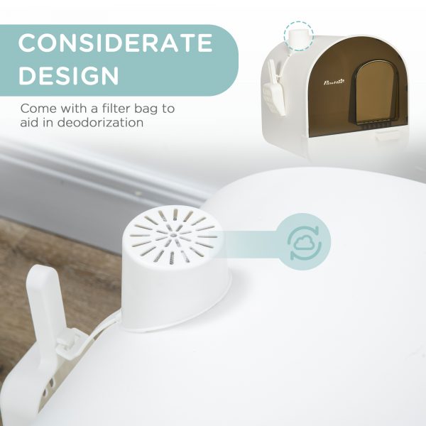 Hooded Cat Litter Tray Kitten Toilet w/ Scoop, Filter, Flap Door 43 x 44 x 47cm