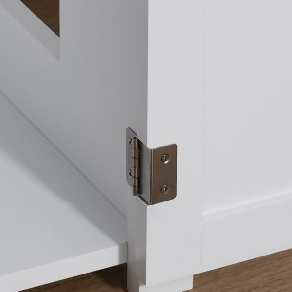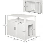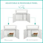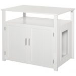 – Can be used as a cat furniture/litter house, with two shelves on top for handy storage – Large enough for most litter trays – Cut-out side entrance for kittens/cats to access inside easily. Front two doors for you to get inside easily – Inside dividing wall can be removed – MDF structure of this cat litter toilet is sturdy and durable, with smooth protective coating – Maximum load 15kg, assembly required