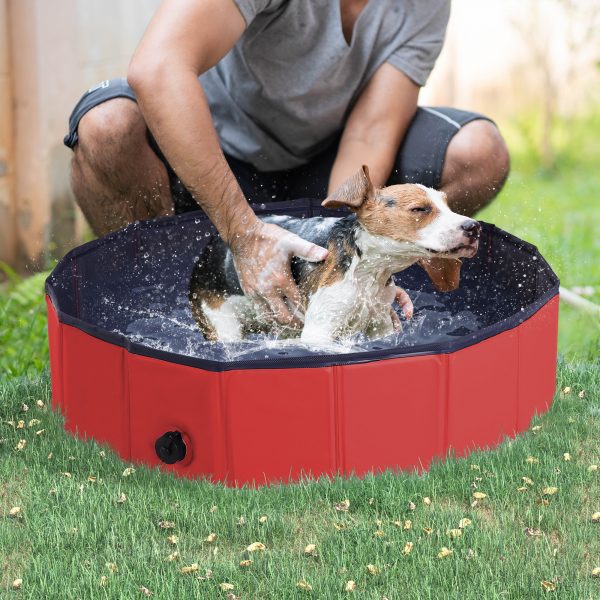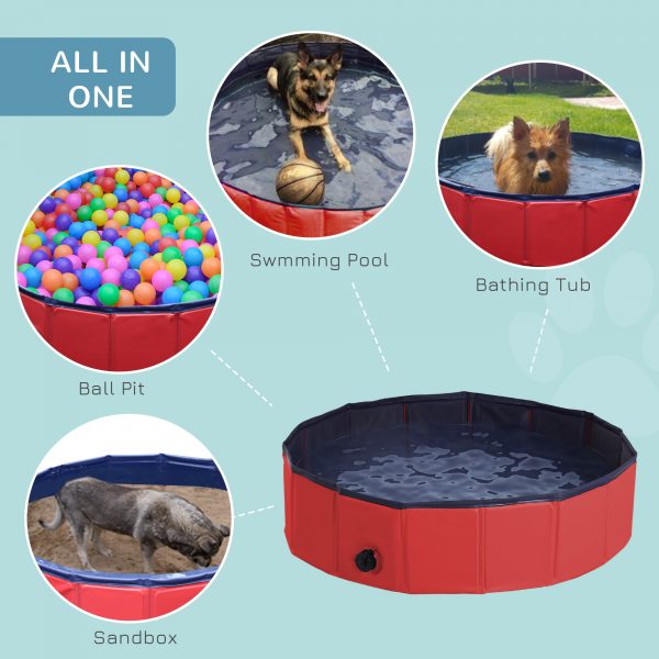 – “Pet Paddling Pool Cat Dog Indoor/Outdoor Foldable 80cm Diameter Red Pawhut”