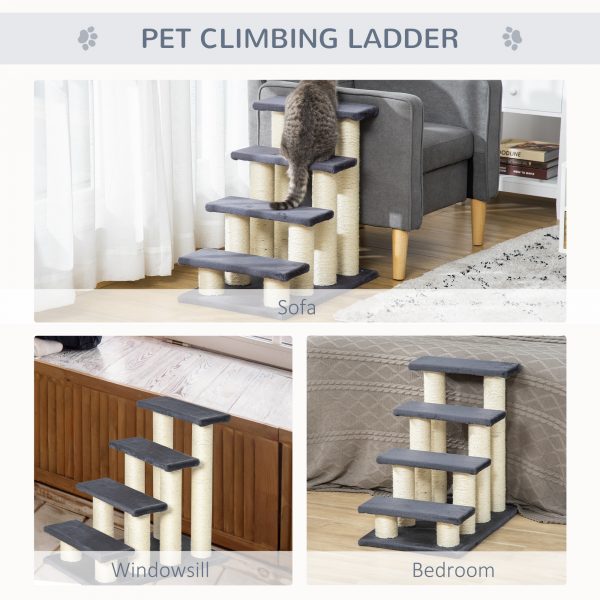 SOLID CONSTRUCTION: Particle board construction with E1 certification, covered with warm and soft faux fur, stable and durable  SISAL SCRATCHING POST: Each scratch post wrapped with wear resistant sisal ropes, great for your cats to sharpen their claws and protect your furniture from damaging  ALL-IN-ONE CENTER: Varying platforms for all manner of cat activity to sleep, exercise, relax, scratch and play. Gives your pet independence to access couches, ledges and high space  OPTIMAL CHOICE: Optimal for older or disabled animals suffering from arthritis, pain, hip dysplasia, help small, older, recovering animals reach higher spots  PRODUCT DIMENSION: Overall Size: 60L x 40.5W x 59H cm. Assembly Required.