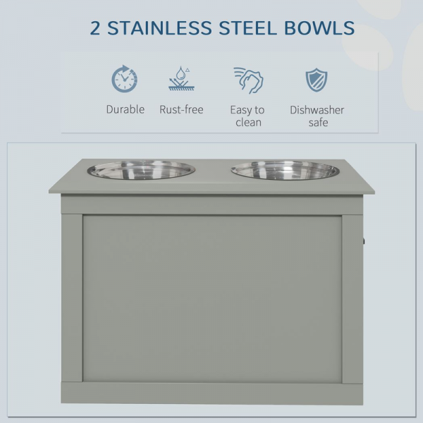 Raised Pet Dog Bowls w/ Storage, Two Bowls, Elevated Base – Grey