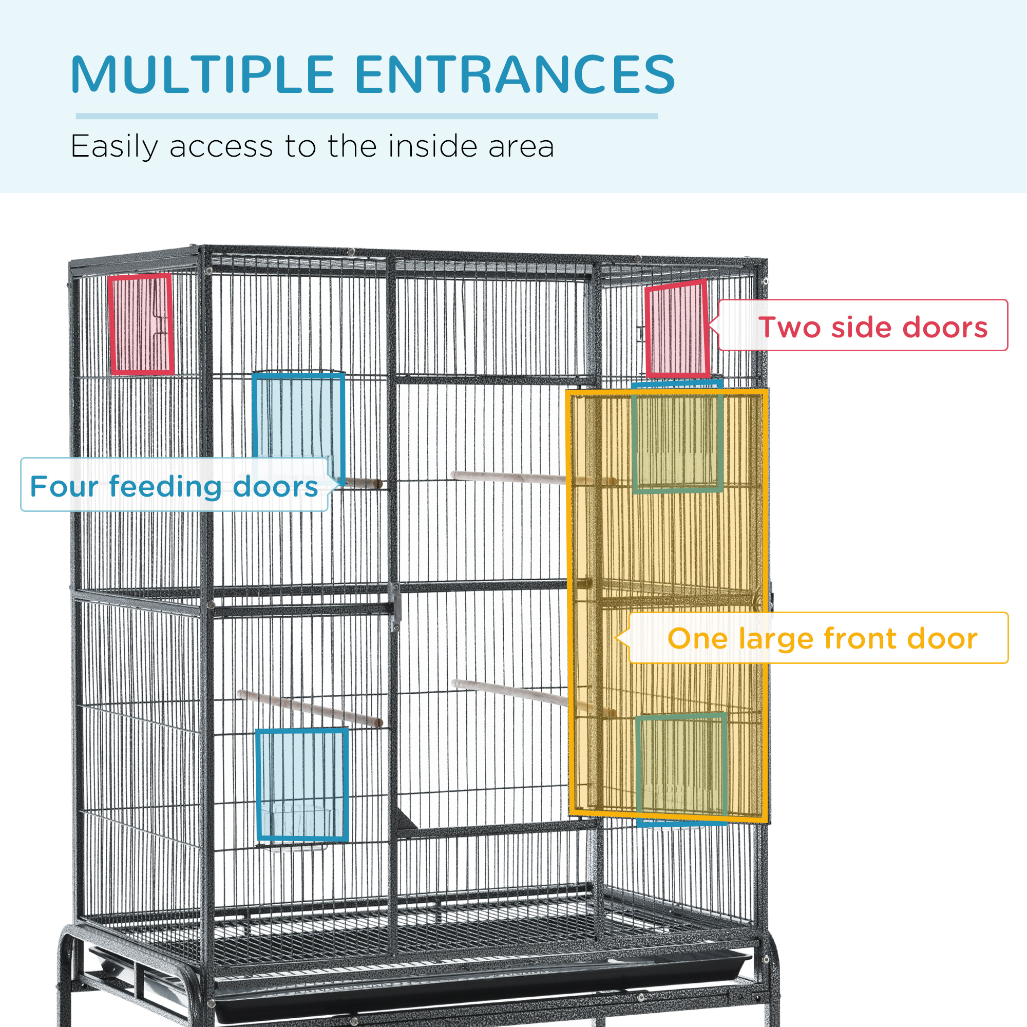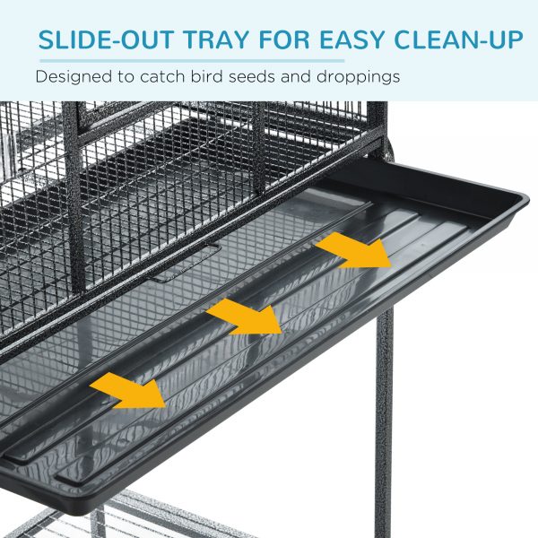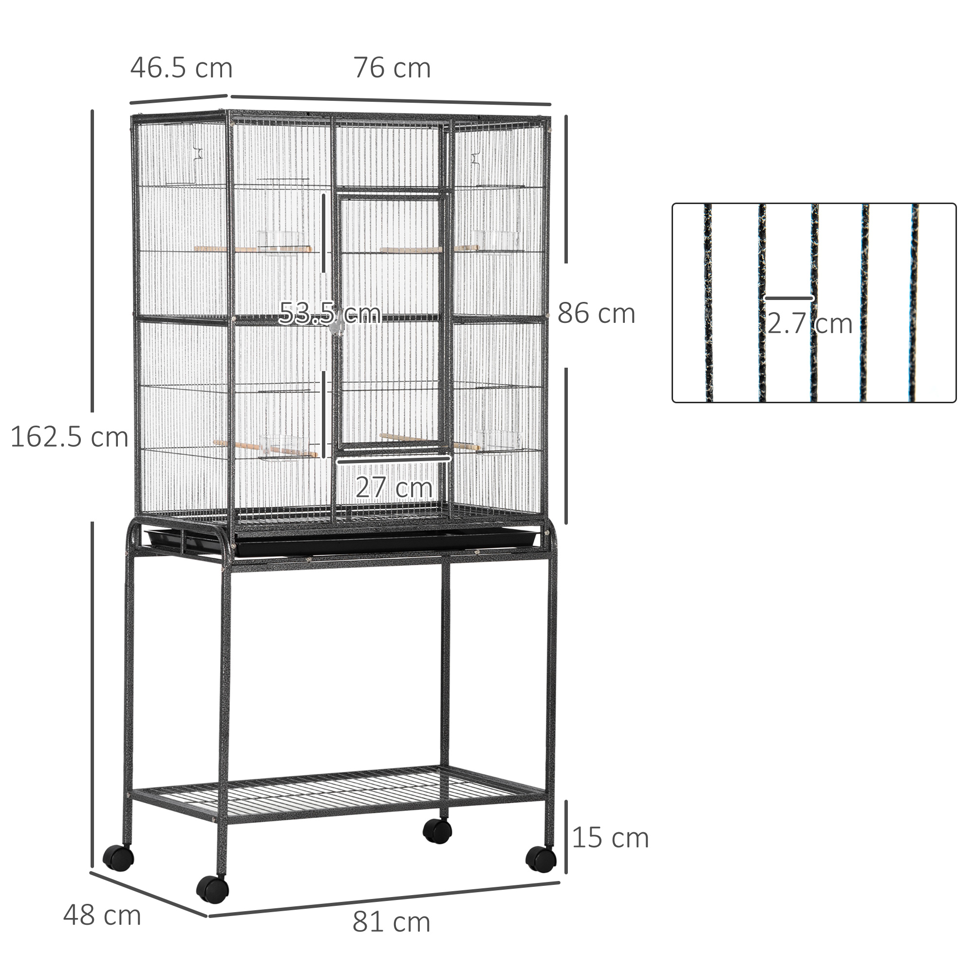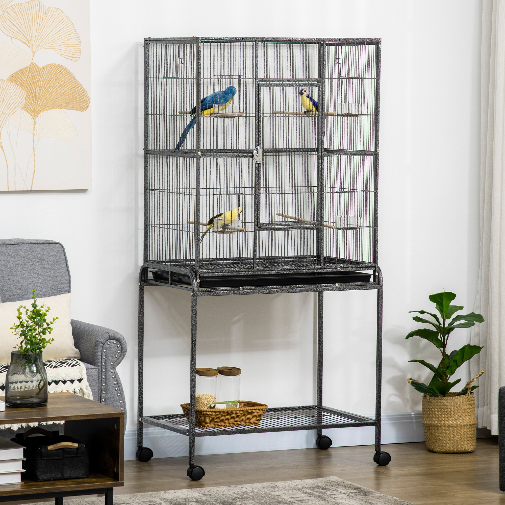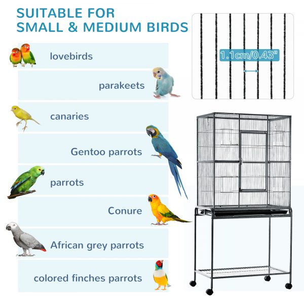 Rolling Bird Cage w/ Detachable Stand, Storage Shelf, Wood Perch, Food Container