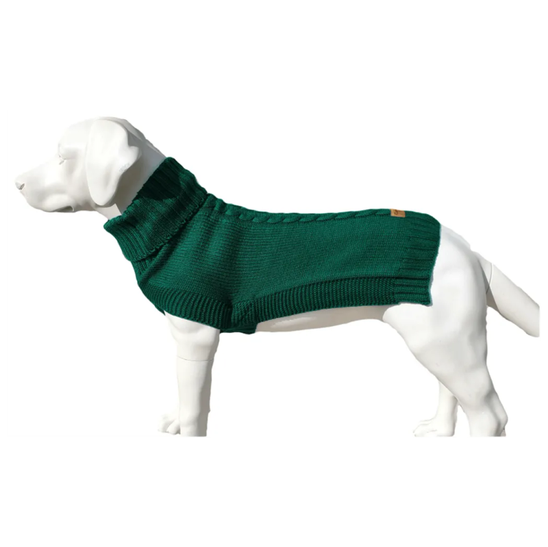 The Jazz dog jumper is of a contemporary Cableknit design. It features:Lycra strengthened rolleck for better hold during wear, and shape recovery afterLeg slitsMedium to long body length, , providing warmth to the the neck, chest and mid back. 100% Acrylic YarnThis style is particularly suitable for longer narrower chested dogs. .