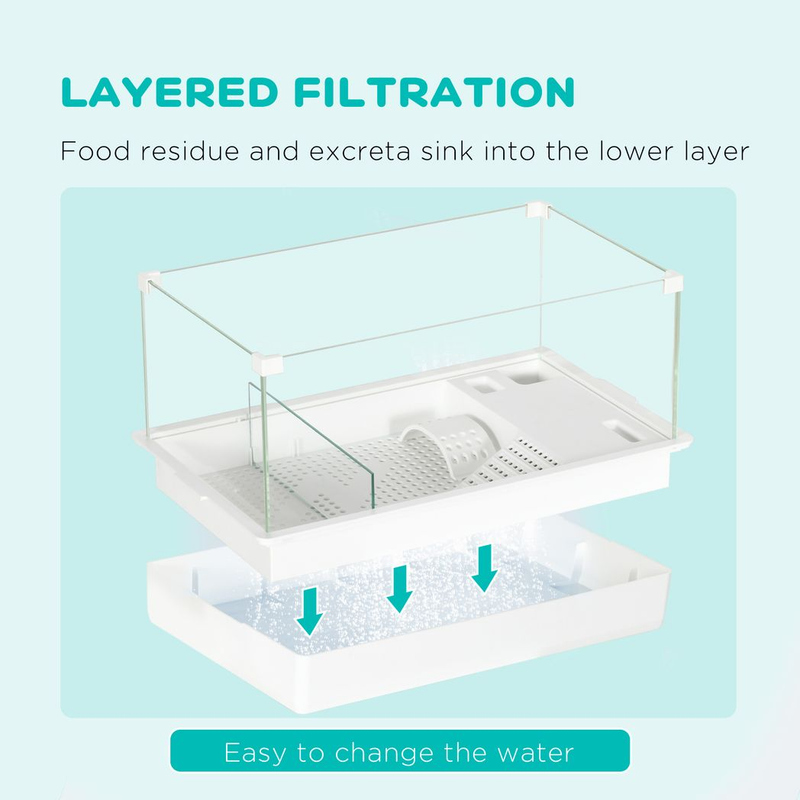– Easy to clean: The glass tank has a three-layer separation design, allowing for easy removal of waste and food scraps. Simply lift the filtering layer to let them sink to the bottom, then pour out the dirty water from the bottom layer. Pets will always have a tidy home to enjoy.