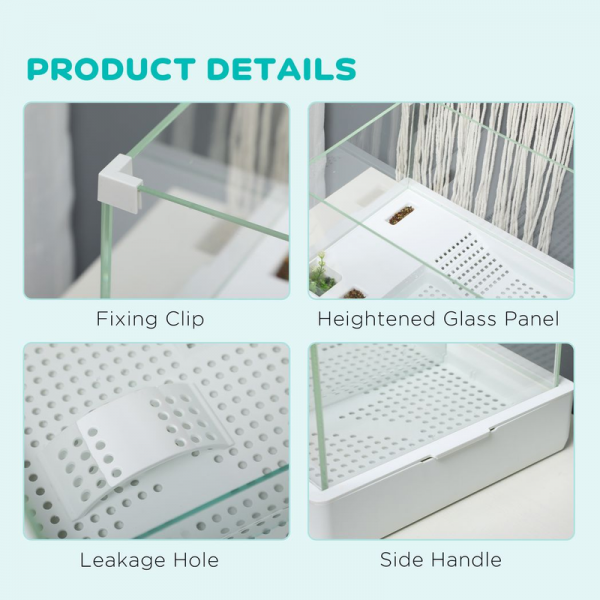 – Four glass panels: The tank is designed with four glass panels that are easy to wipe clean and allow you to watch your pets from all angles without any blind spots.