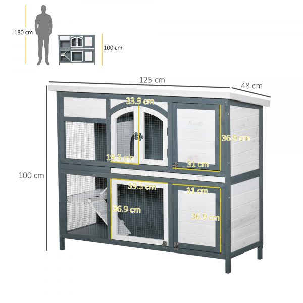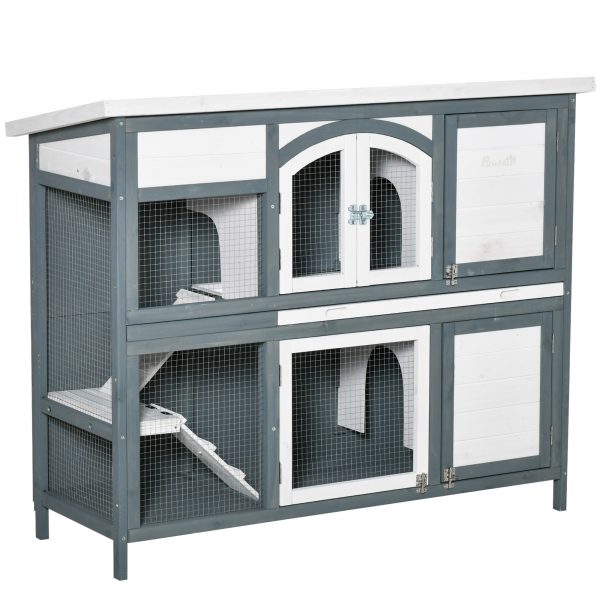 – Solid Wooden frame and asphalt roof is Suitable for outdoors – steel wire fencing for ventilation – Two ramps so pets can access the different levels – Pull-out tray on the upper level for easy cleaning – multiple Lockable doors for easy access and security – Suitable for Two rabbits – Assembly required